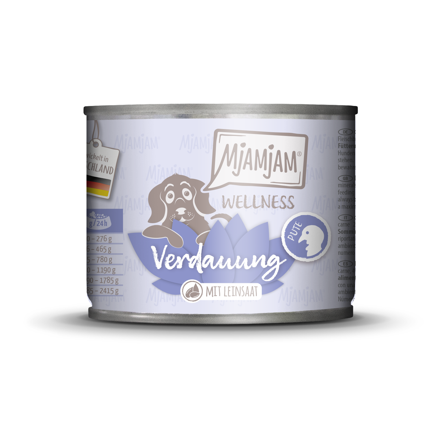 Sanfte Streicheleinheiten für´s Hundebäuchlein garantiert dieses leckere Monoprotein-Alleinfutter. MjAMjAM Wellness Verdauung bringt mit Leinsaat das Verdauungs-Chakra in Balance und den Hundegeist ins Gleichgewicht.