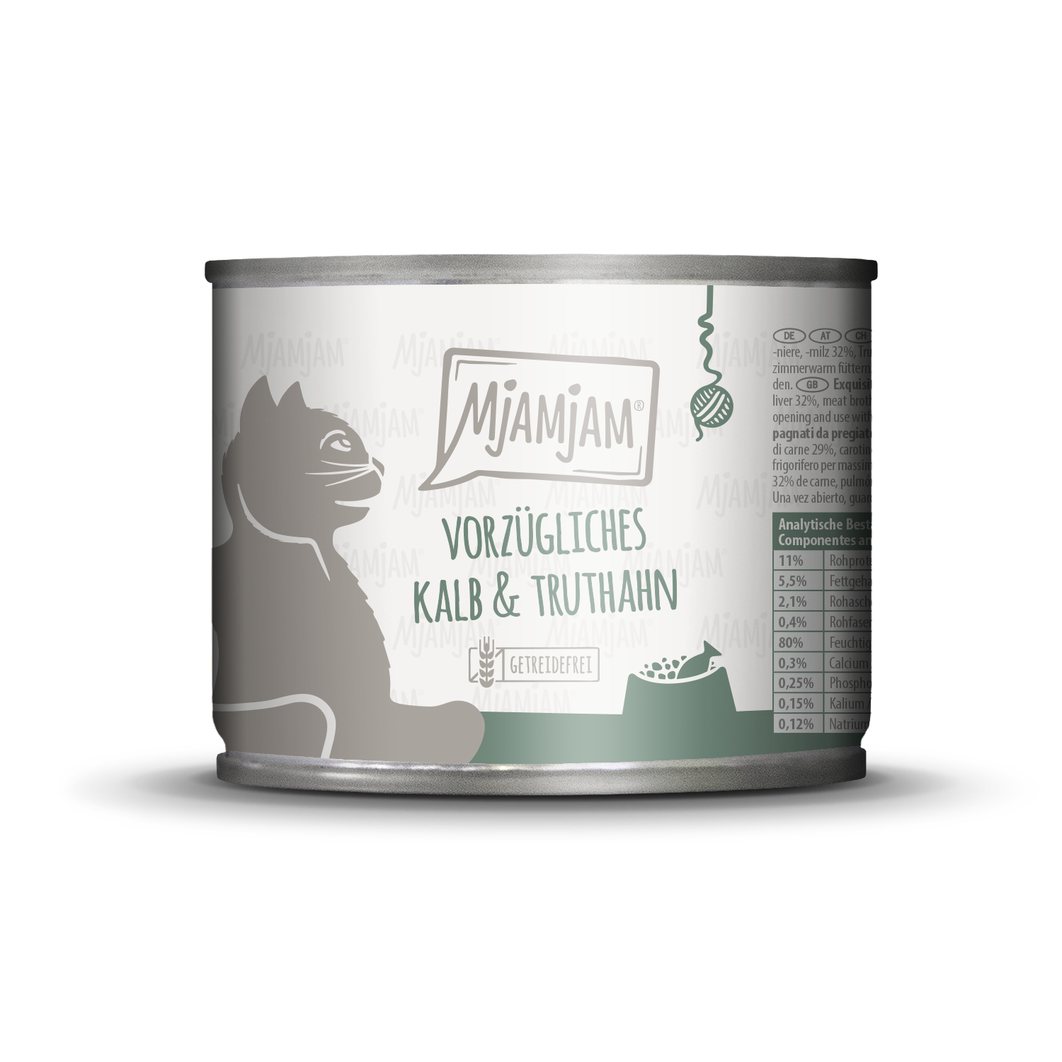 Diese Mahlzeit bietet deinem Liebling alles was er braucht. Das frische Kalbfleisch, verfeinert mit Truthahn und knackigen Möhrchen, gibt ihm ein einzigartiges und exklusives Genusserlebnis, das ihn zugleich mit allen wichtigen Vitaminen und Mineralien versorgt. „Artgerecht, natur- und beutenah“ – dies steht bei uns für einen sehr hohen Fleischanteil. Auf Getreide, Zucker, Konservierungs- oder Geschmacksstoffe sowie synthetische Bindemittel wird vollends verzichtet.